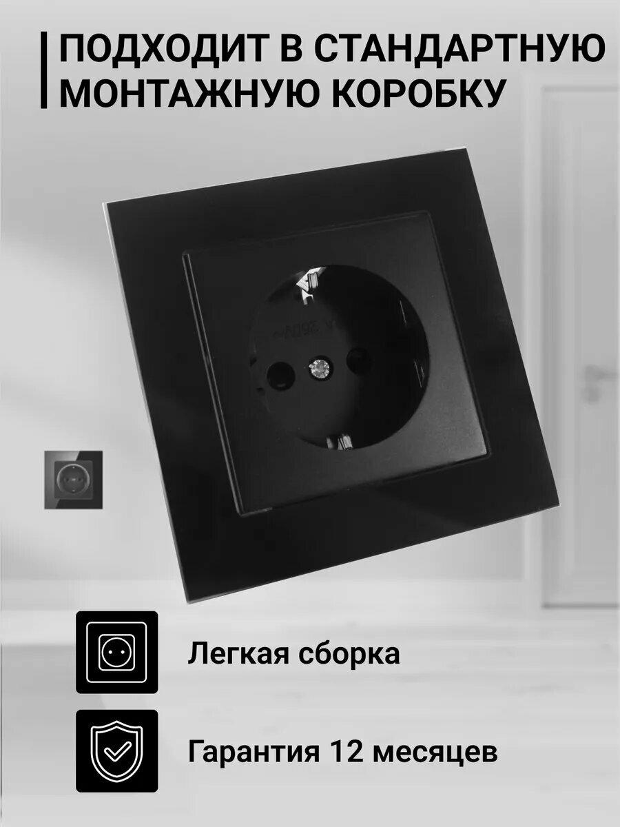 Розетка Stekker "Катрин", одинарная, черная, с заземлением и шторками, стекло 3 шт 1 900 ₽