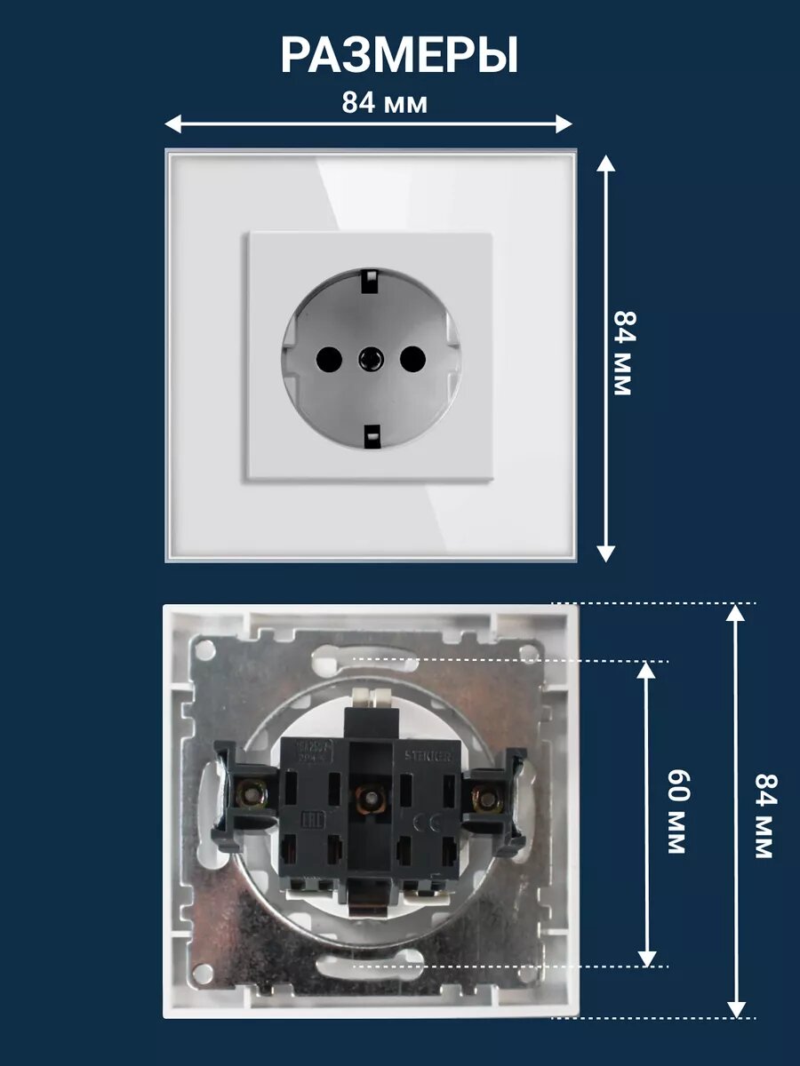 Розетка Stekker "Катрин", одинарная, белая, с заземлением и шторками, стекло 10 шт информация:
