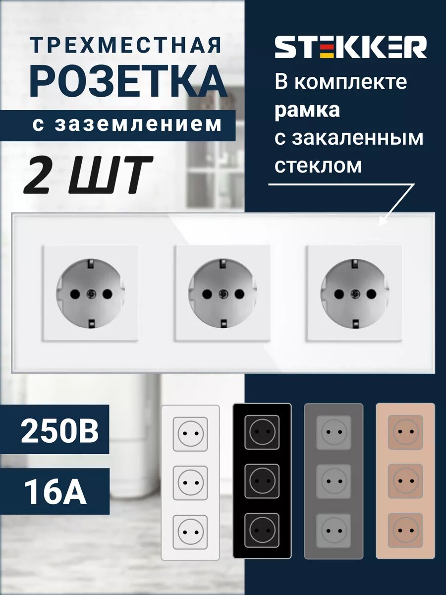 Отзывы на Розетка Stekker "Катрин", тройная, белая, с заземлением и шторками, стекло 2 шт