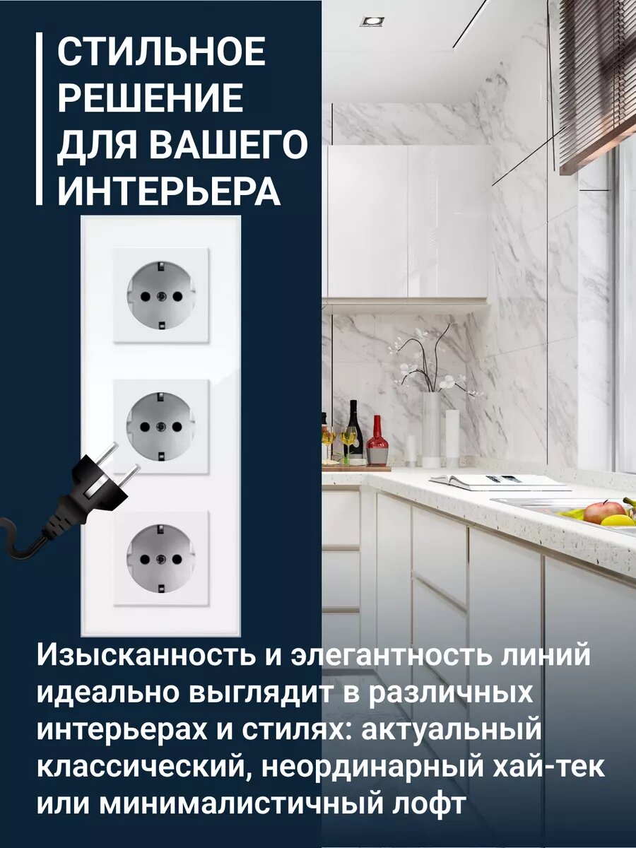 10 цен на Розетка Stekker "Катрин", тройная, белая, с заземлением и шторками, стекло 3 шт