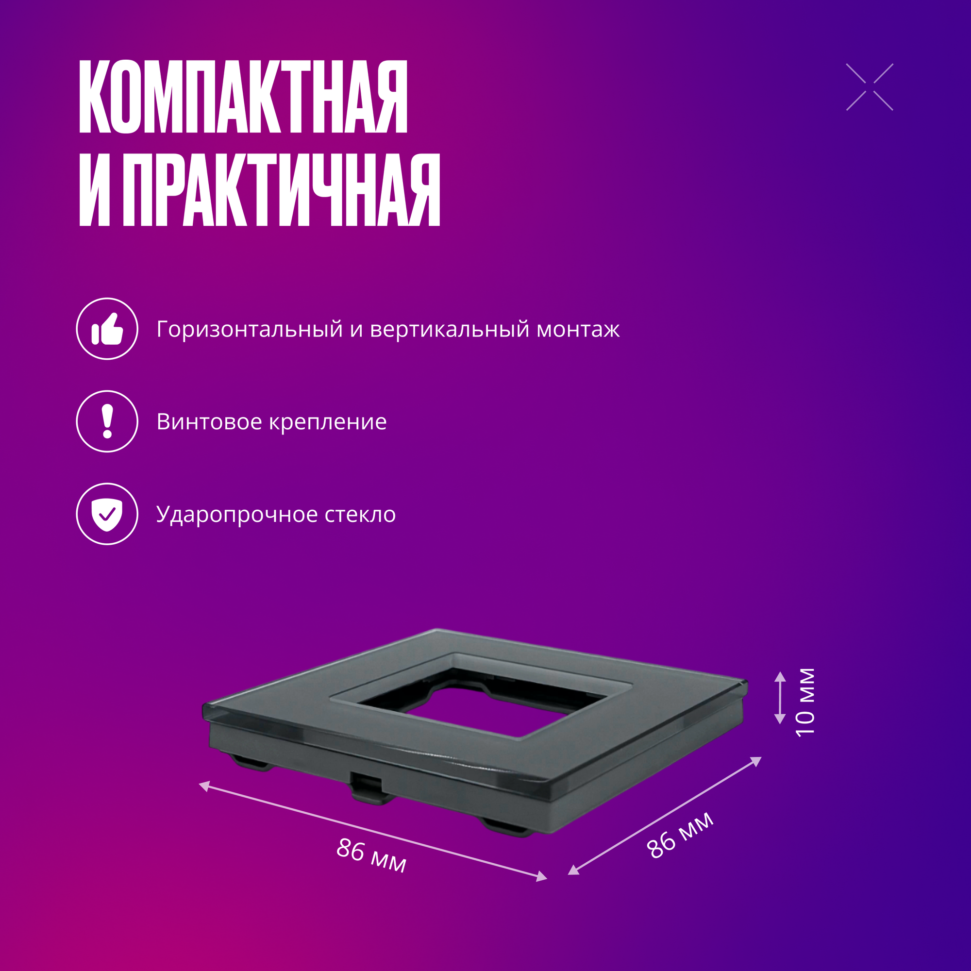 Отзывы на Рамка для розетки/выключателя электроустановочная на 1 пост, серая, стеклянная, квадратная, с металлическим брекетом