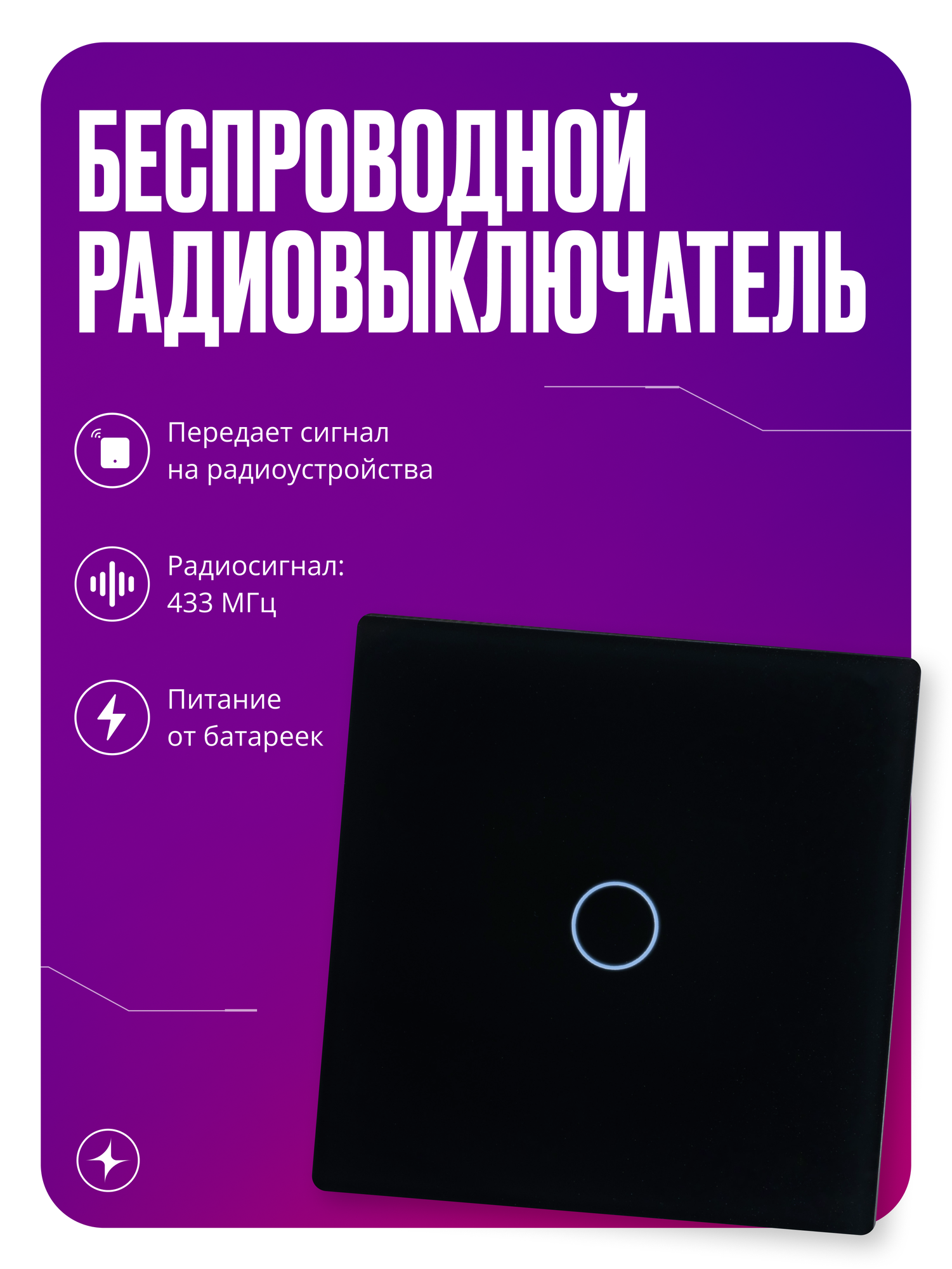 Отзывы на Повторитель сенсорный умного выключателя RF 433 Mhz стеклянный на батарейках одноклавишный, черный