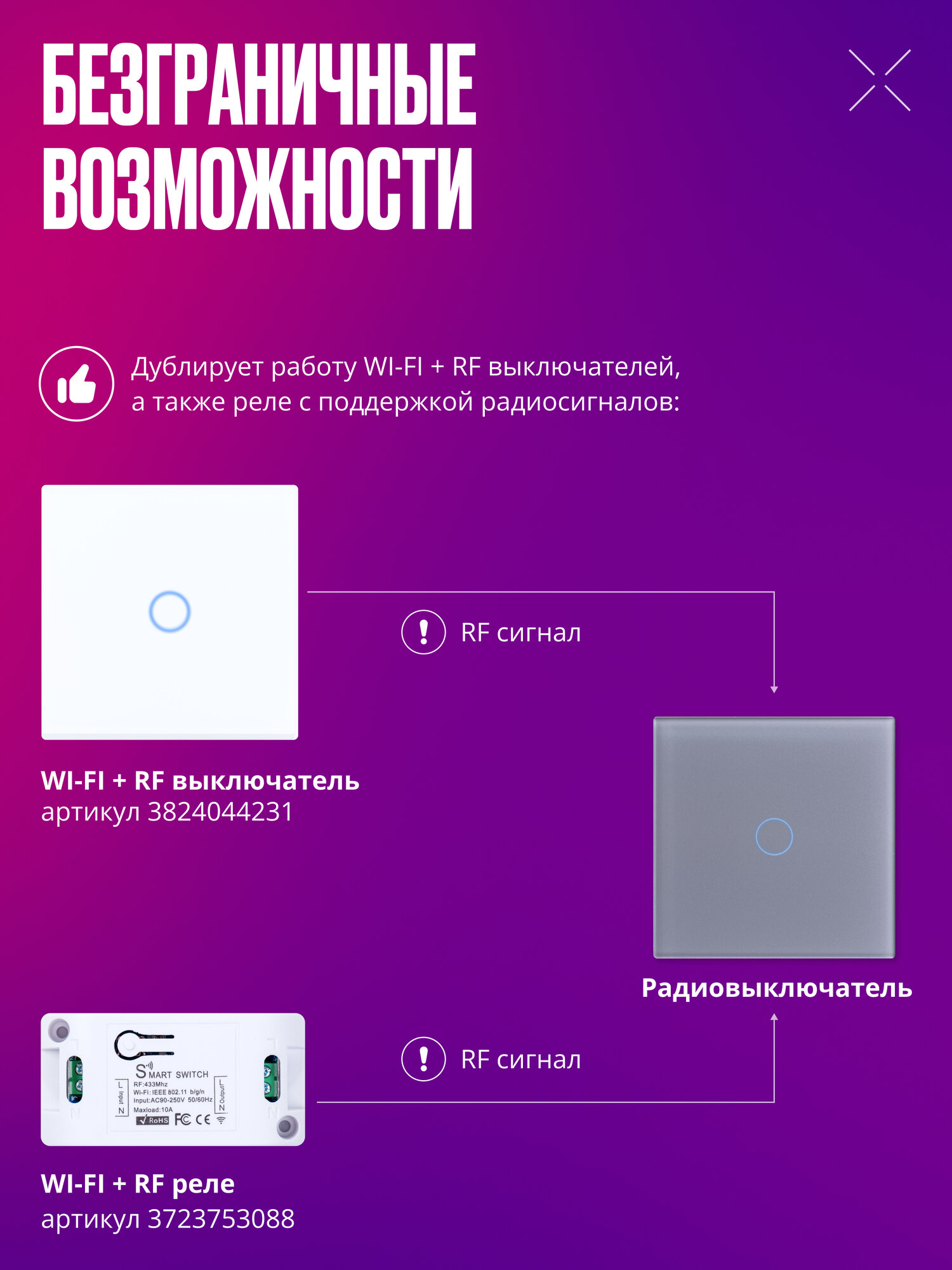 Отзывы на Повторитель сенсорный умного выключателя RF 433 Mhz стеклянный на батарейках одноклавишный, серый