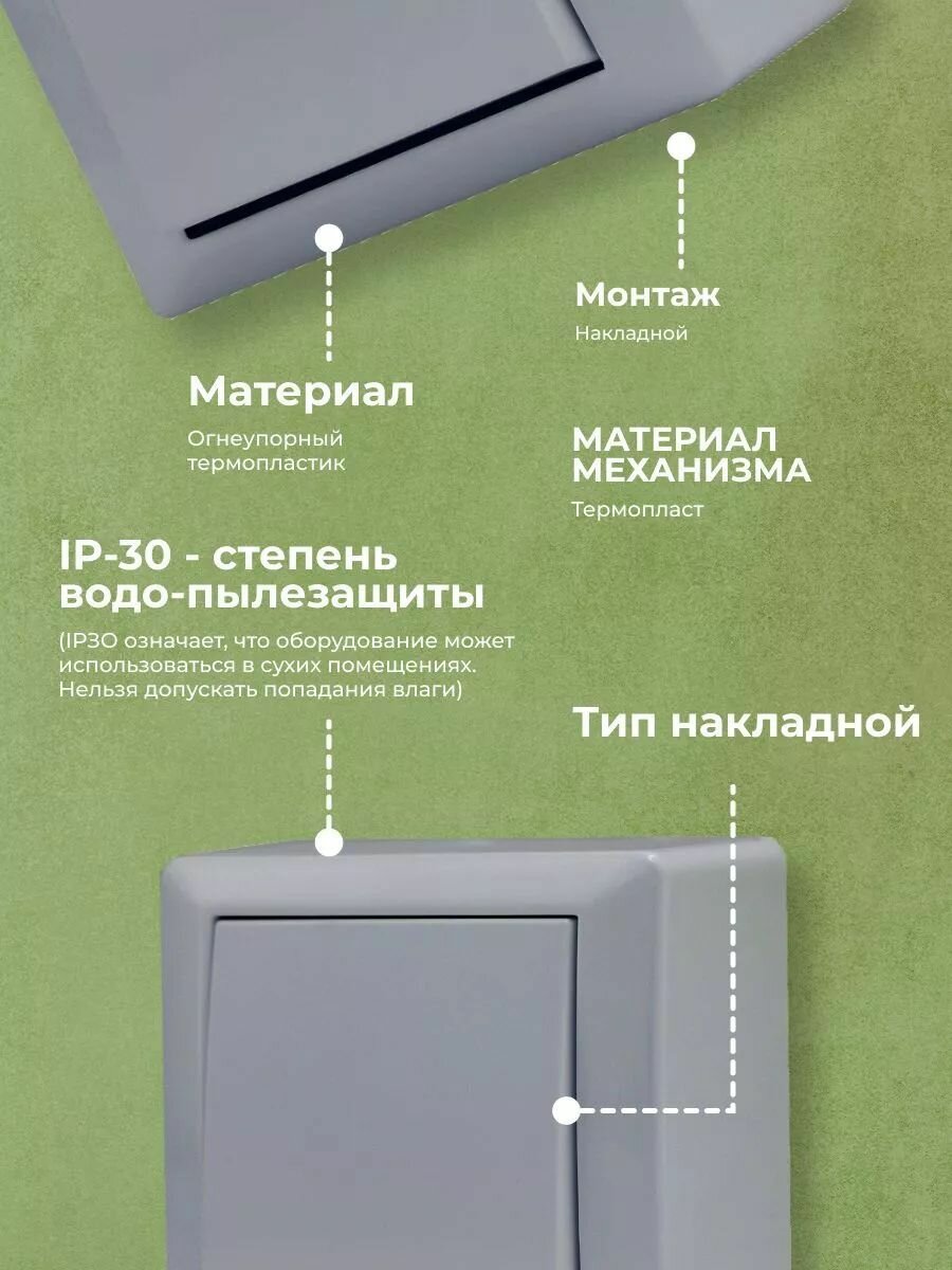 Выключатель накладной одноклавишный серый Vesta-Electric Mega Silver - 4шт. информация: