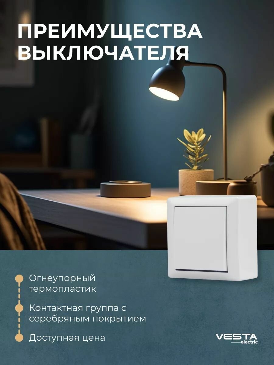 Отзывы на Выключатель накладной одноклавишный белый Vesta-Electric Mega -4шт.