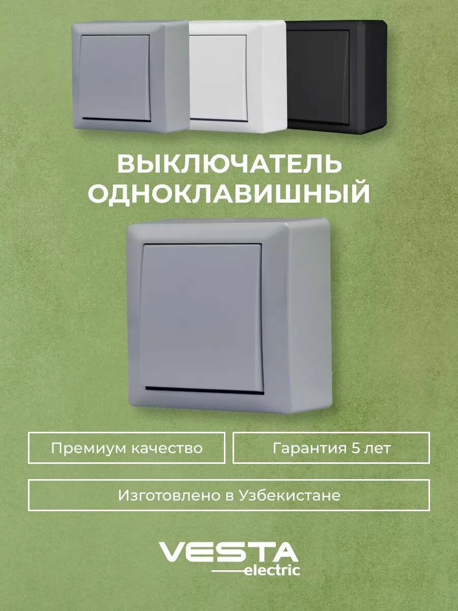 Отзывы на Выключатель накладной одноклавишный серый Vesta-Electric Mega Silver - 9шт.