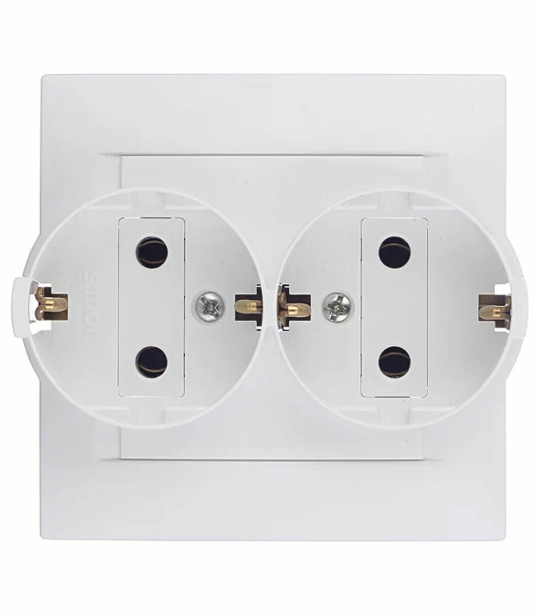 10 цен на Розетка Simon 15 1590459-030, белая, с заземляющим контактом, 2 поста
