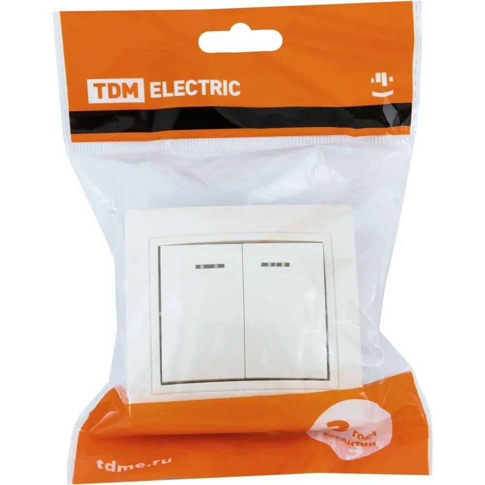 Выключатель двухклавишный с подсветкой, слоновая кость (250В, 10А, Таймыр, IP20) информация: