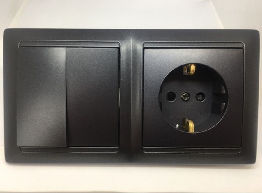 Блок угловой розетки и 2 клавишный выключатель цвета графит информация: