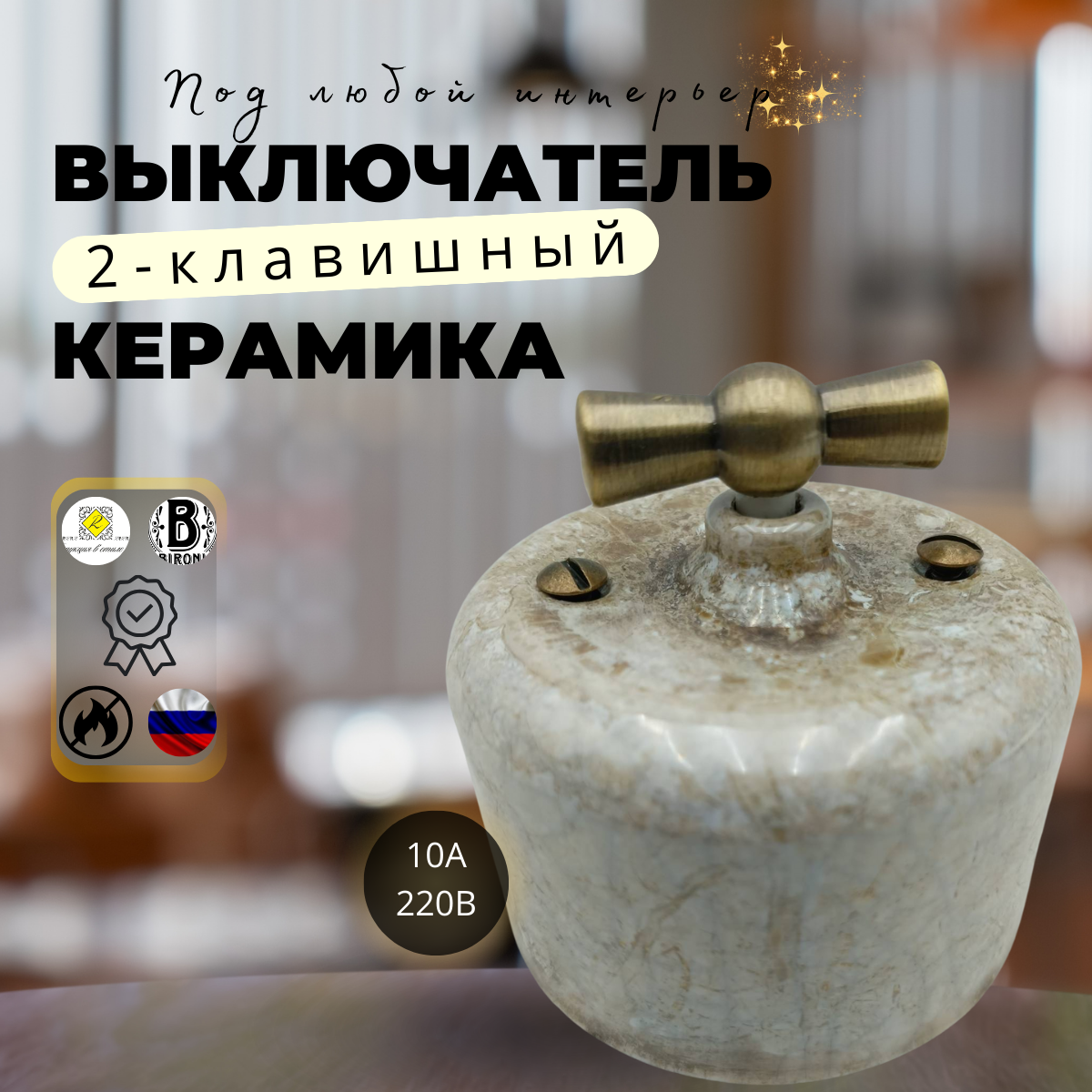 10 цен на Выключатель ретро BIRONI Бирони ришелье 2- клавишный, керамика, цвет мрамор R1-212-09