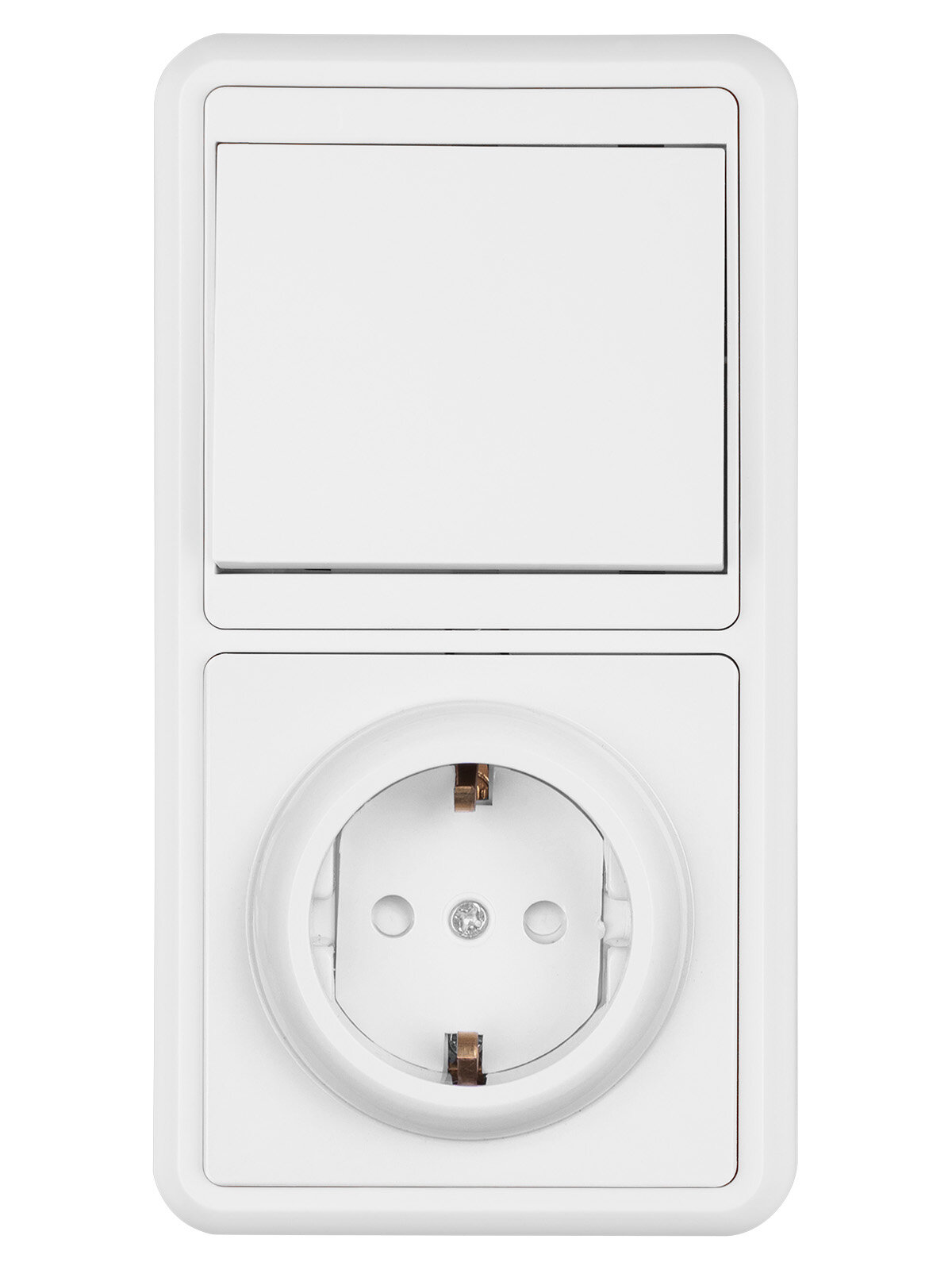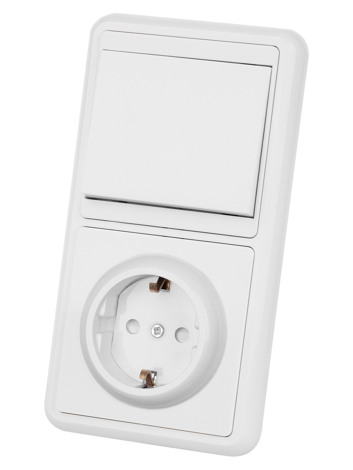 Розетка с выключателем блок комбинированный вертикальный (152х82х26 мм, одноклавишный выключатель + розетка 2П) 510 ₽