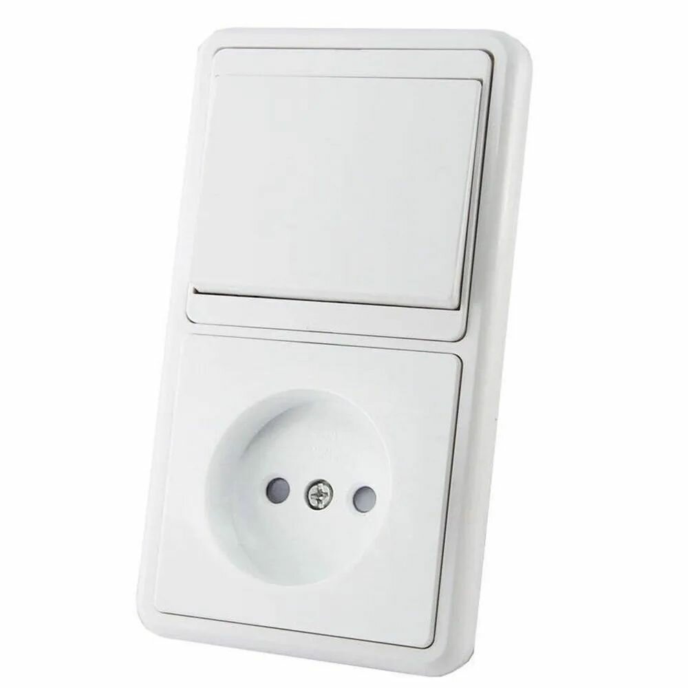 10 цен на Розетка с выключателем блок комбинированный вертикальный (152х82х26 мм, одноклавишный выключатель + розетка 2П)