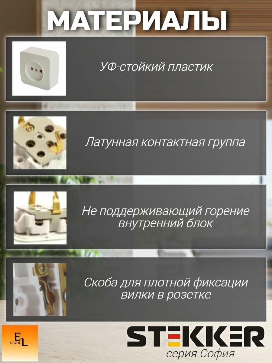 Отзывы на Розетка двойная открытой установки белая без заземления IP20, 10А, 250В, Stekker, София