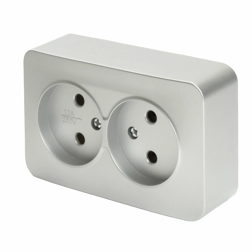 Розетка двойная без заземления открытой установки 250В 10А IP20 серия София серебро Stekker 49327 информация: