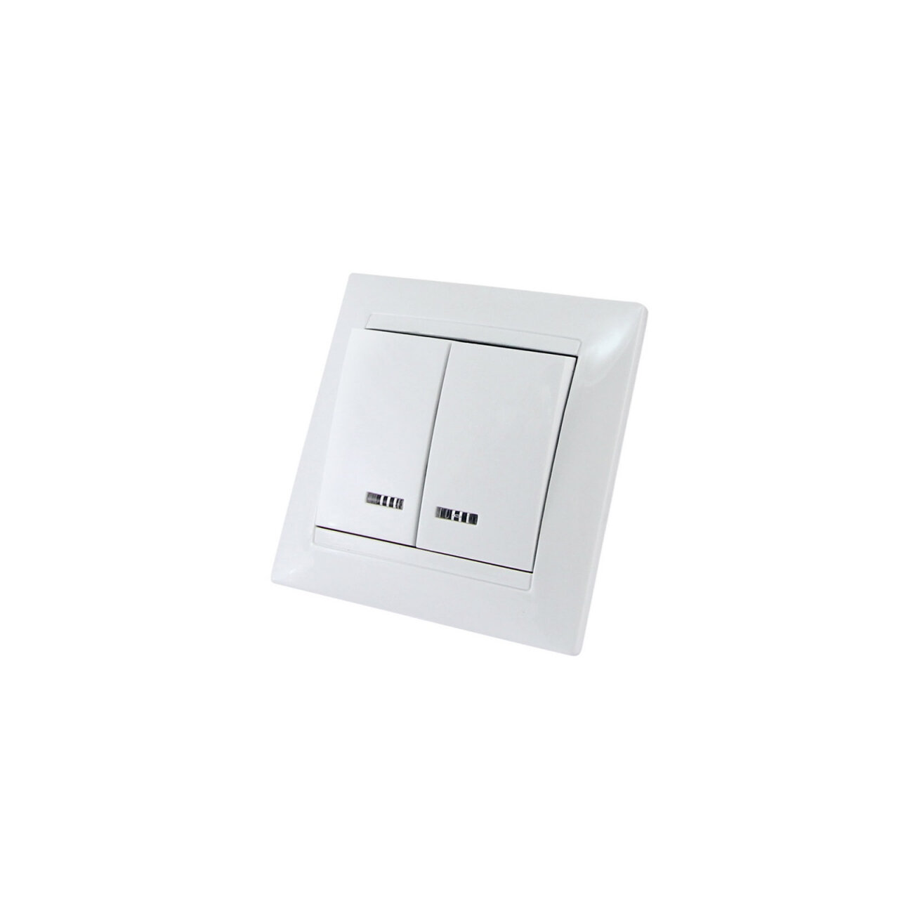Выключатель 2 клавишный с подсветкой 10А белый "Лама", TDM SQ1815-0005 (1 шт.) информация: