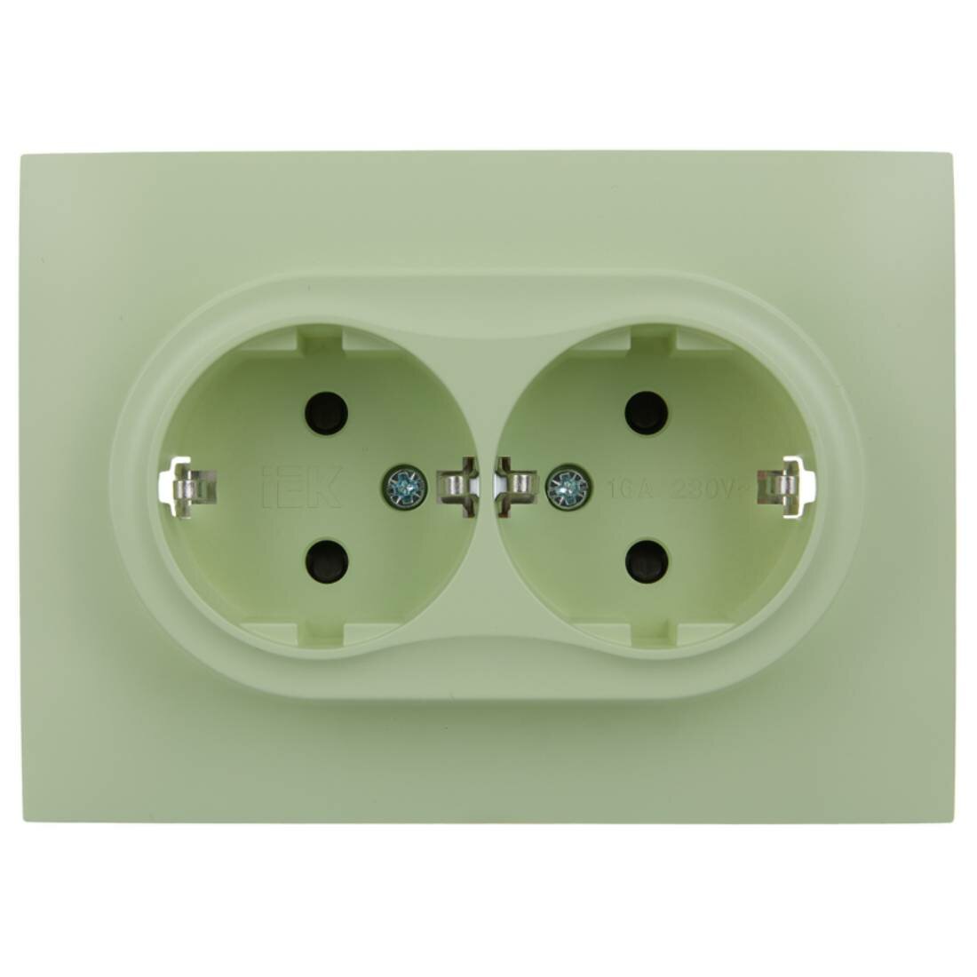 Розетка двухместная IEK SKANDY с заземлением с защитными шторками 16А в сборе SK-R07G мятный (комплект из 10 шт.) информация: