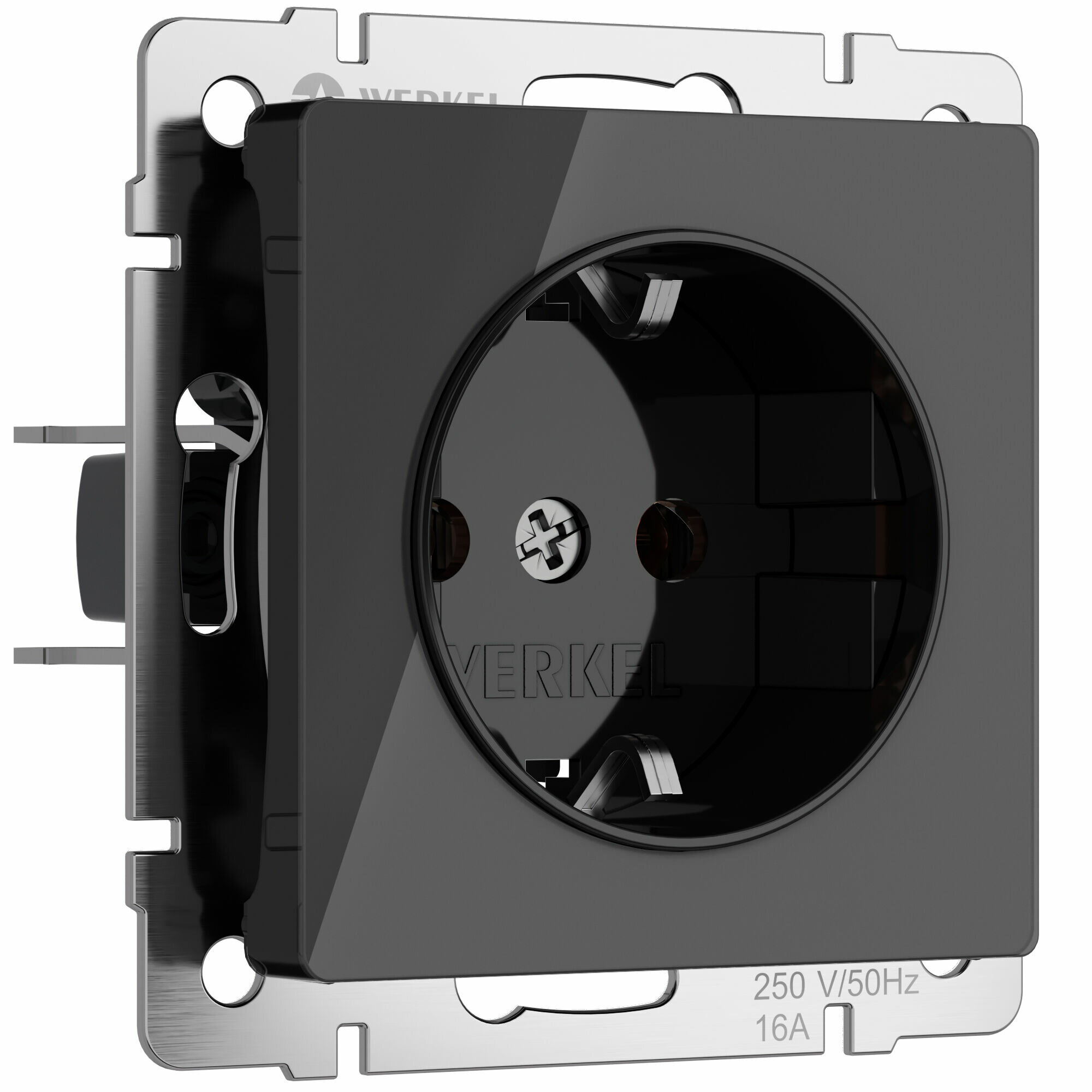 Встраиваемая розетка с заземлением и шторками Werkel W1171148 черный акрил IP31 информация: