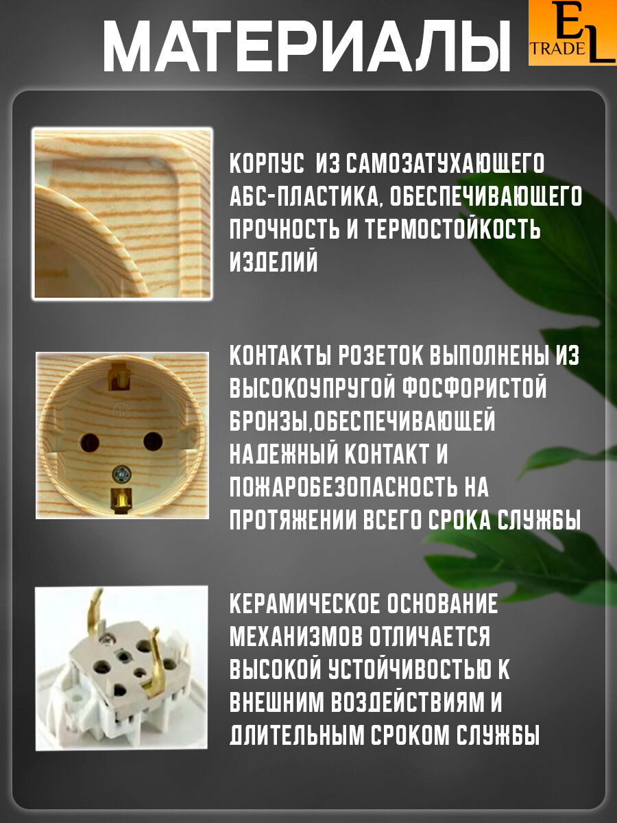10 цен на Розетка открытой установки с защитными шторками и заземлением сосна, 2П, IP20, 16А, Ладога