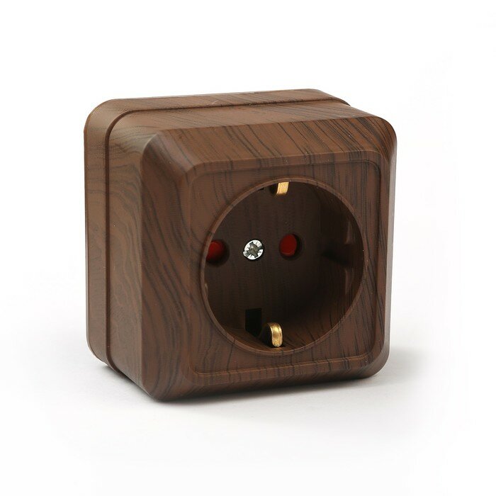 Розетка TDM Electric Ладога с заземлением одинарная сосна для открытой проводки