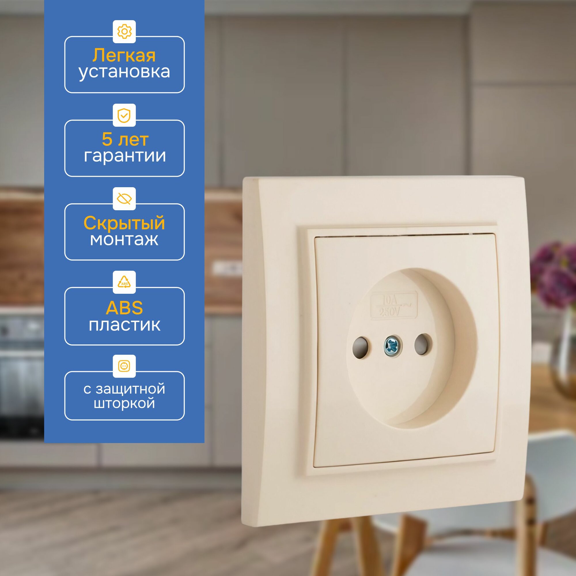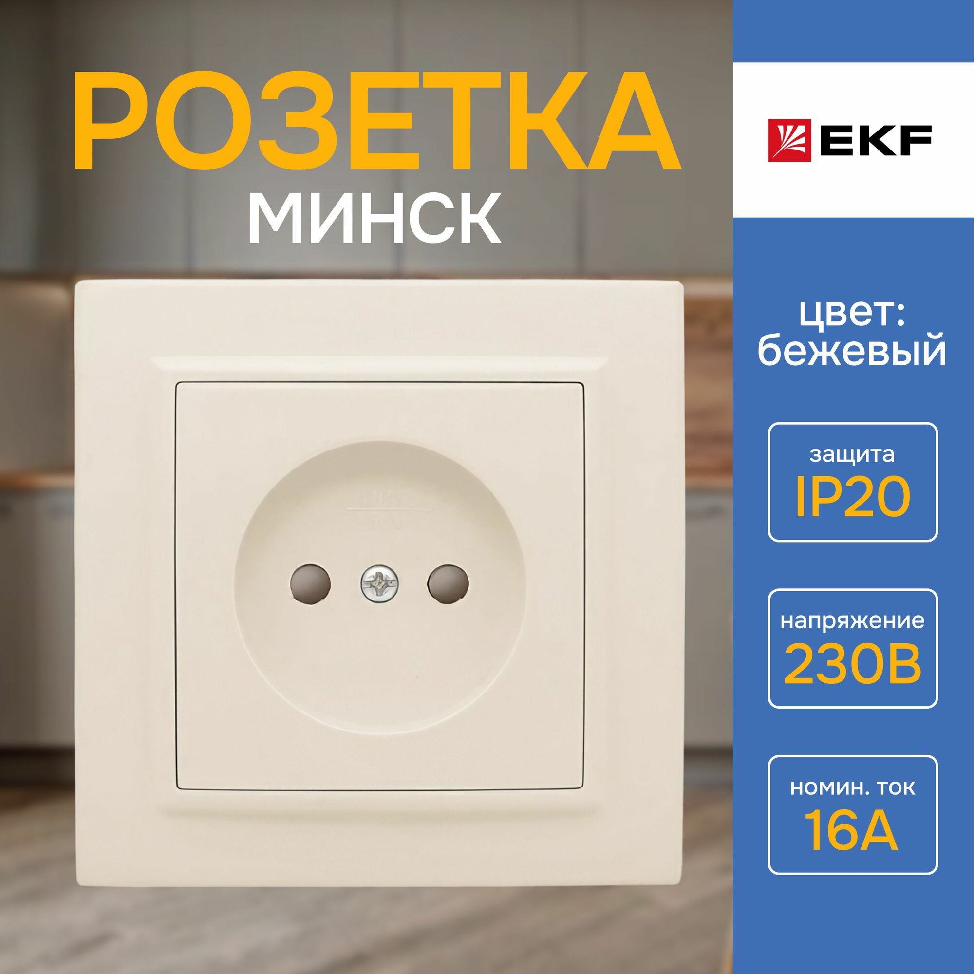 10 цен на Розетка 1-местная EFK Минск с защитной шторкой, 20IP, 10А, бежевая, 1 шт.