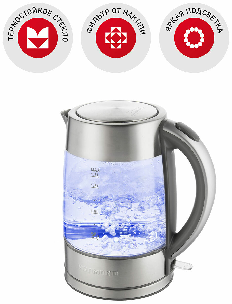 Чайник электрический Redmond RK-G138 Стекло/Сталь информация: