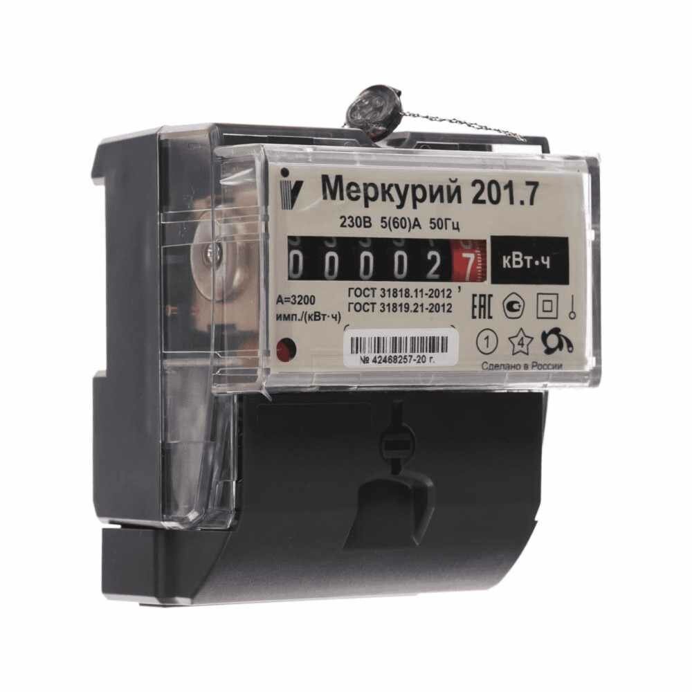 Счётчик однофазный Меркурий 201.7/5/60 А 1 тариф на DIN-рейку МЕХ информация: