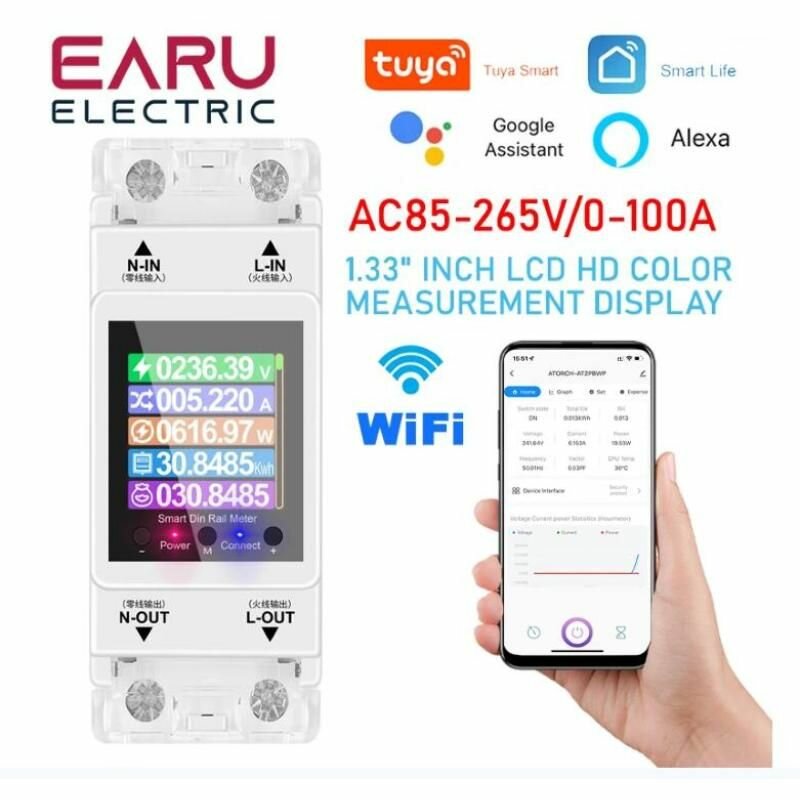 Отзывы на Счетчик электроэнергии однотарифный однофазный электросчетчик, Умный переключатель 2P 100A Tuya, Wi-Fi, на Din-рейку, 220 В