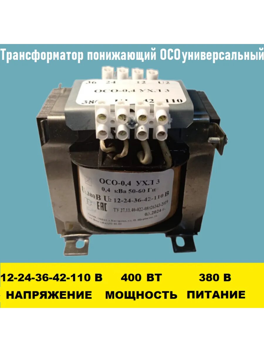 Трансформатор ОСО-0.4-09 380/12-110В универсальный информация: