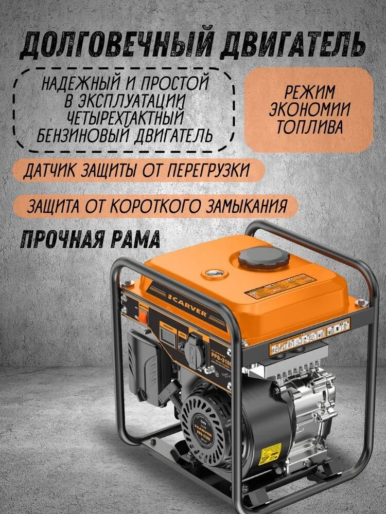 Отзывы на Генератор бензиновый CARVER PPG-3100i инверторный (2.5 кВт, AVR, 230 В, бак 6 л, объем двигателя 208 куб. см)