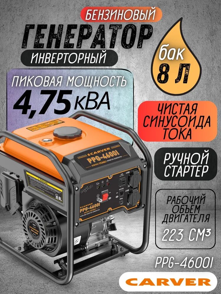 Отзывы на Генератор CARVER PPG-4600I инверторный ( 3.8 кВт, 8 л, USB, дисплей, 2 розетки 16А, ручной запуск)