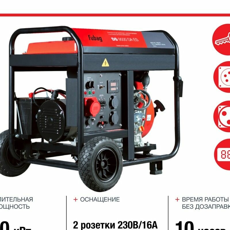 Отзывы на Генератор дизельный FUBAG DS 9500 DA ES, 7 кВт, 380 В, трехфазный