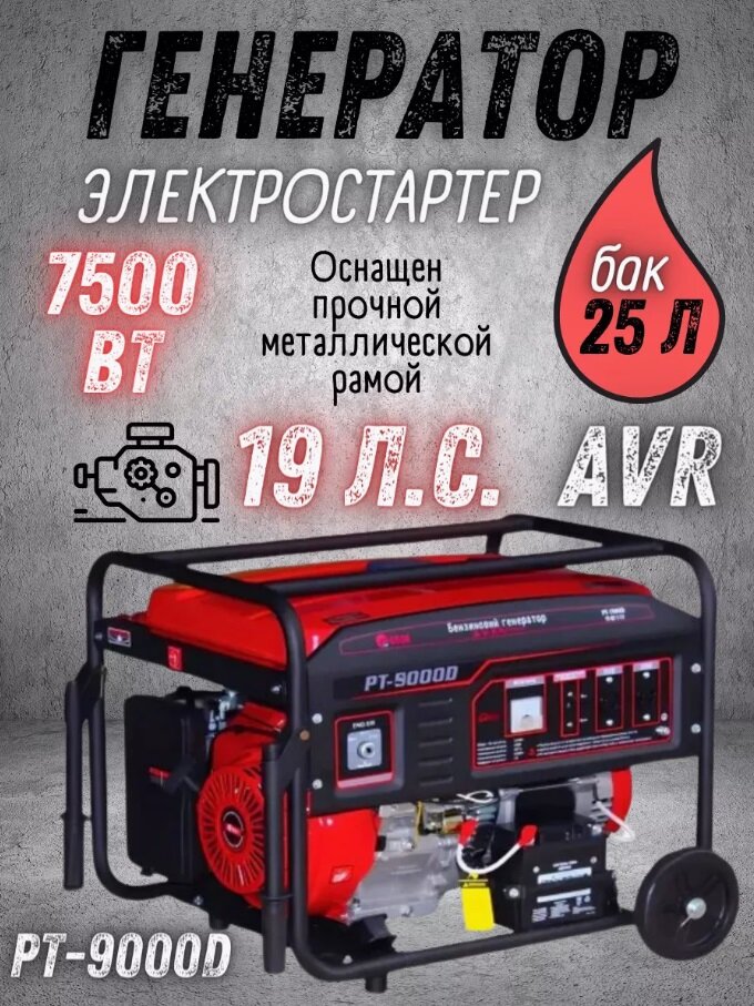Генератор бензиновый на 220В Edon PT-9000D, бензогенератор, 7500 Вт, 19 л. с информация: