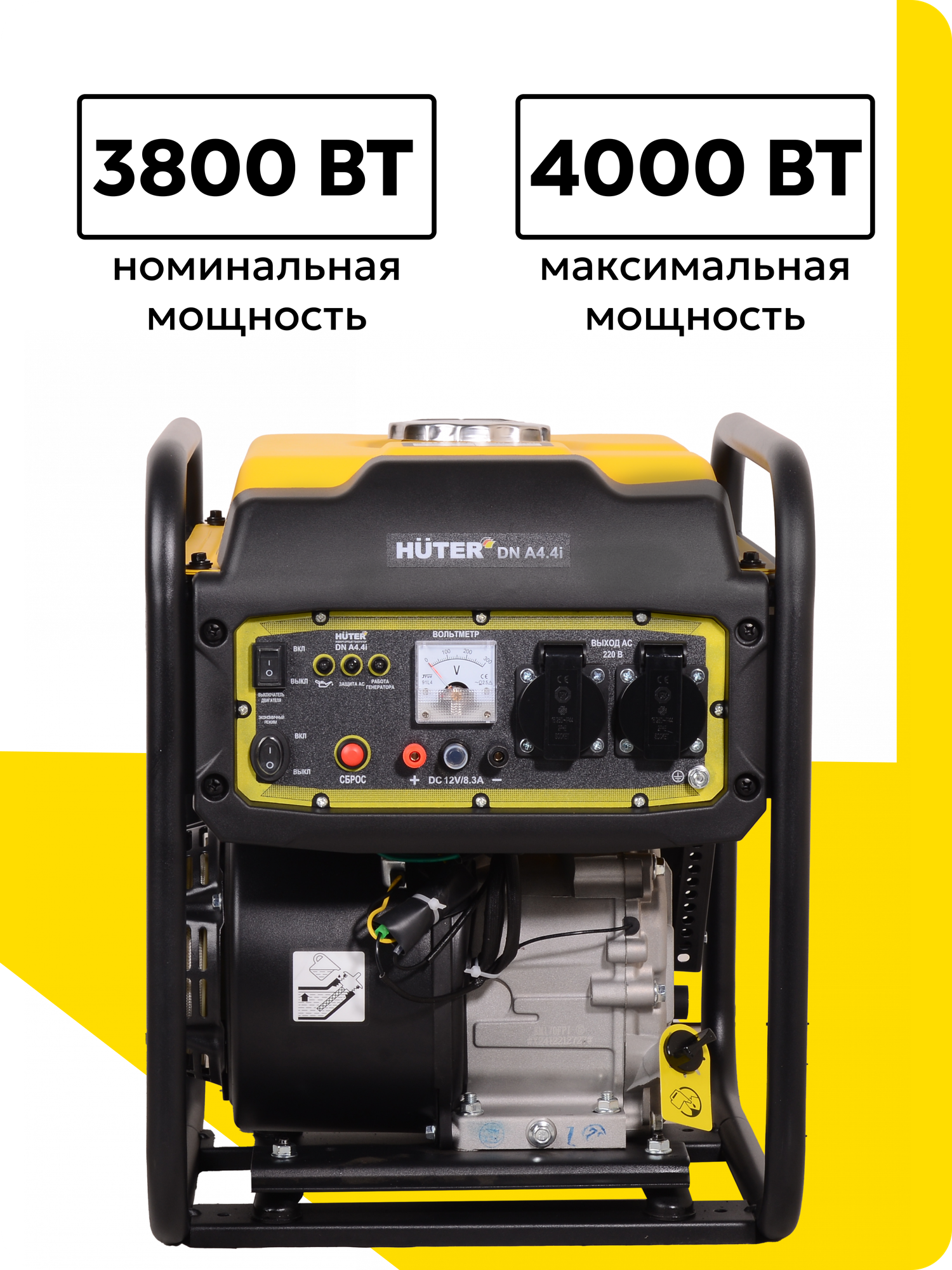 Инверторный генератор DN А4,4i Huter, бензин АИ-92, 3,8 кВт, 220 В, бак – 7 л информация: