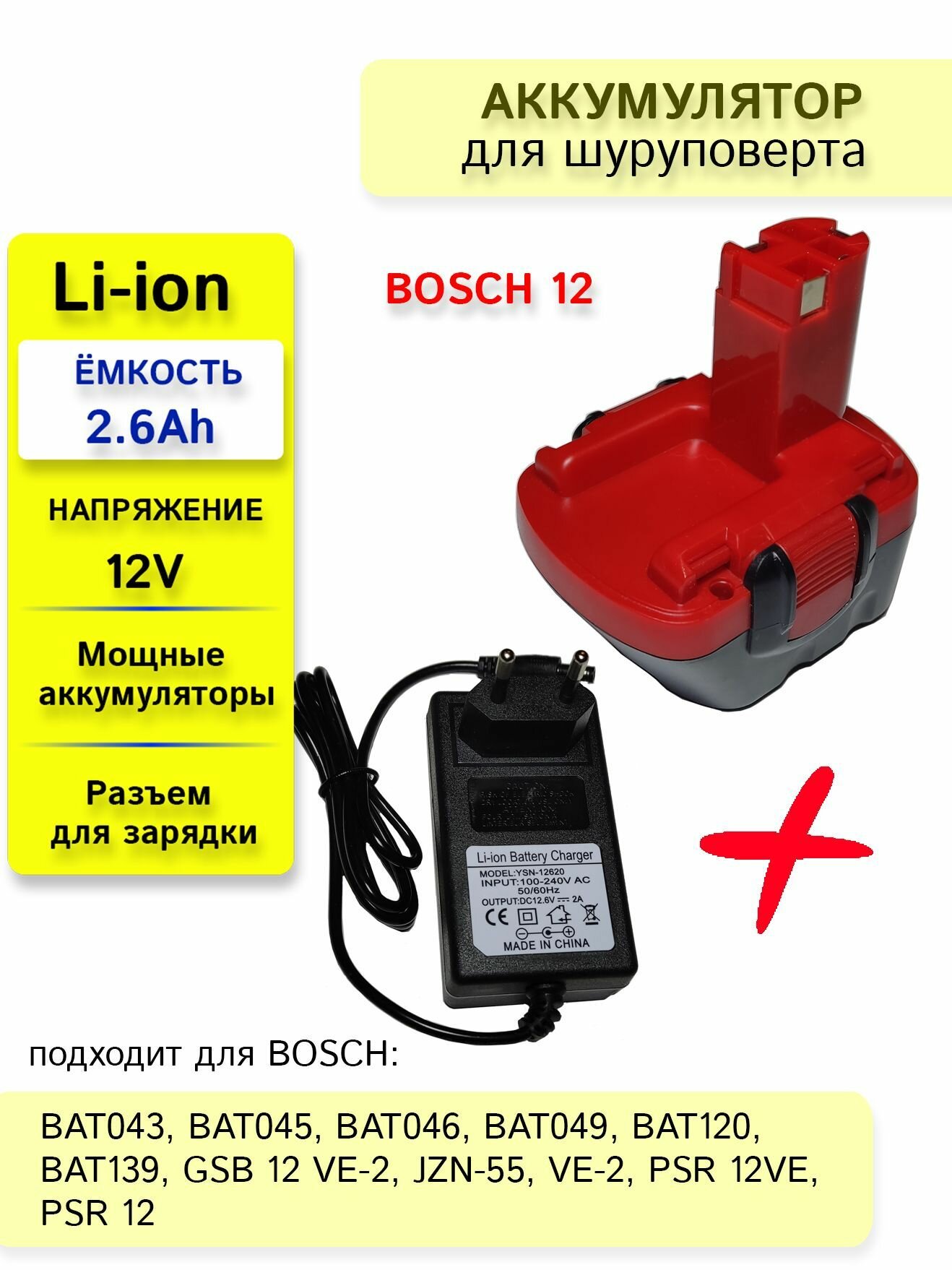 10 цен на Аккумулятор для шуруповерта BOSCH 12V, 2600Ah Li-Ion + зарядное устройство