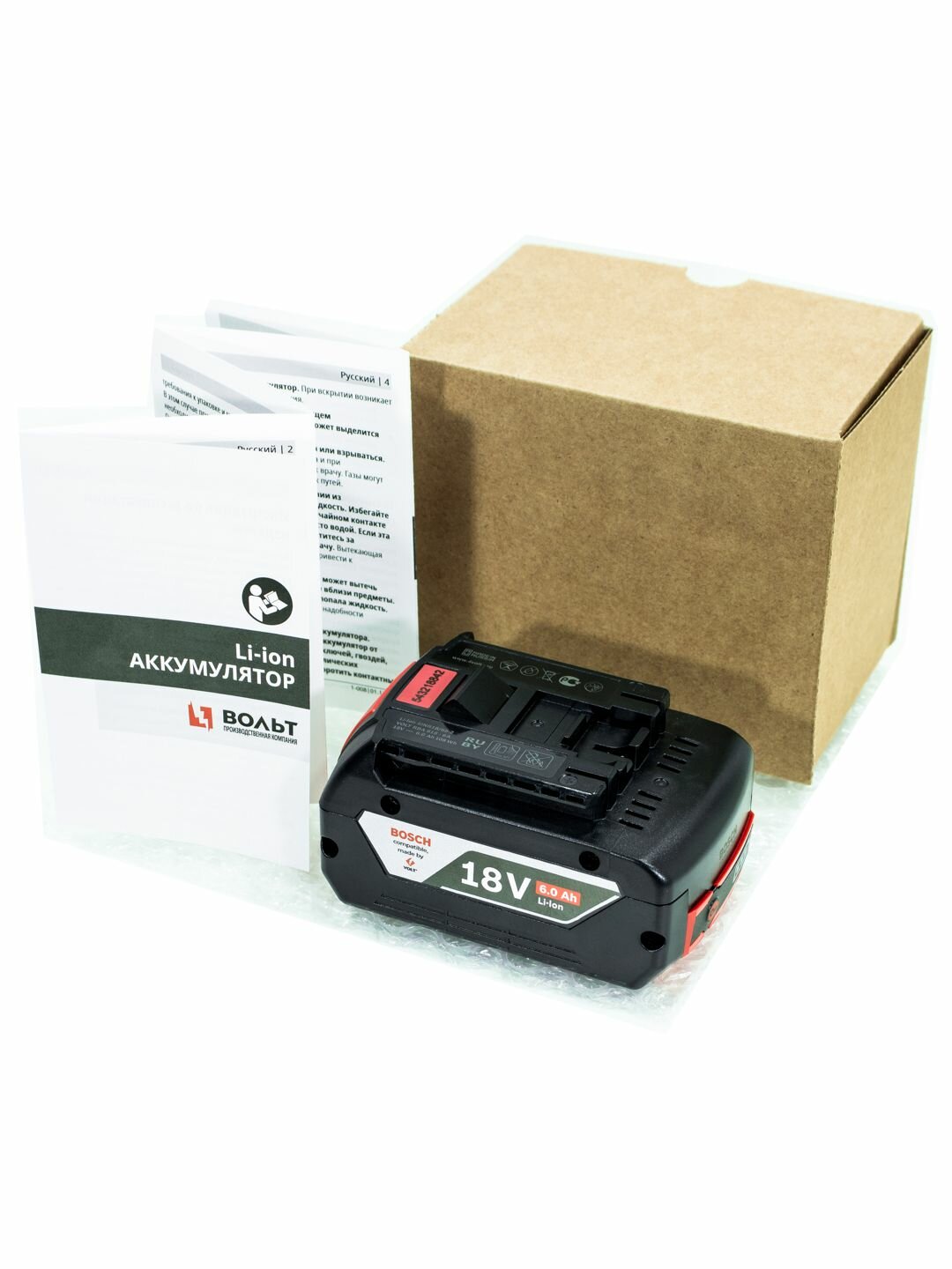 Аккумулятор для BOSCH 18V Li-Ion 6.0 Ah GBA 18V c индикацией заряда АКБ БОШ без эффекта памяти информация: