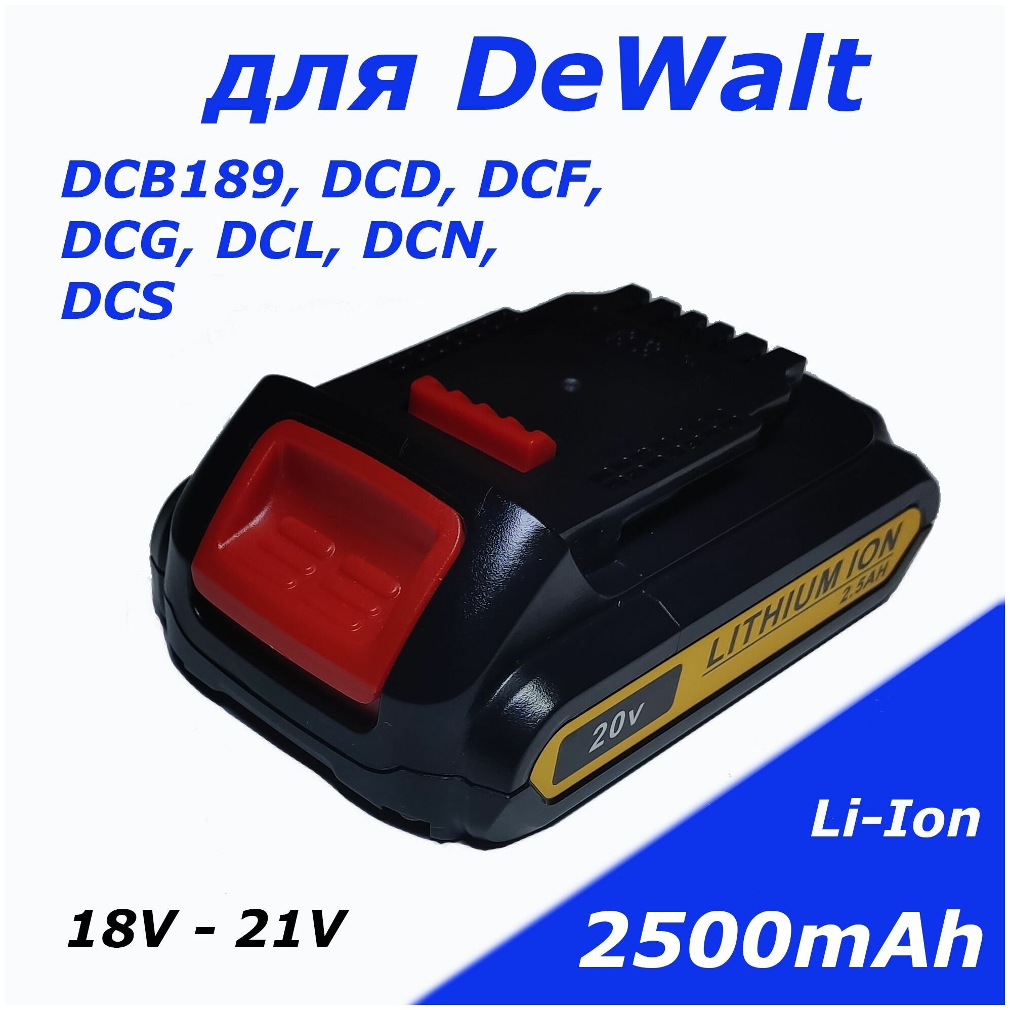 Аккумулятор для DeWALT DCB189, DCD, DCF, DCG, DCL, DCN, DCS 18V 2500mAh Li-Ion информация: