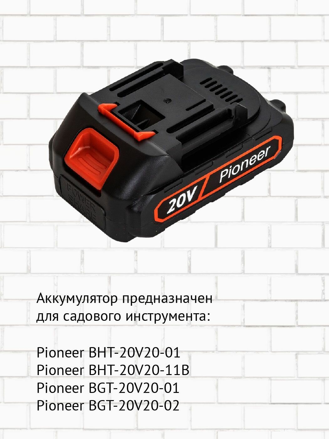 10 цен на Батарея аккумуляторная Pioneer BT-M20V2sl-01 для садовых триммеров, кусторезов Pioneer, емкость 2000 мАч, 20В