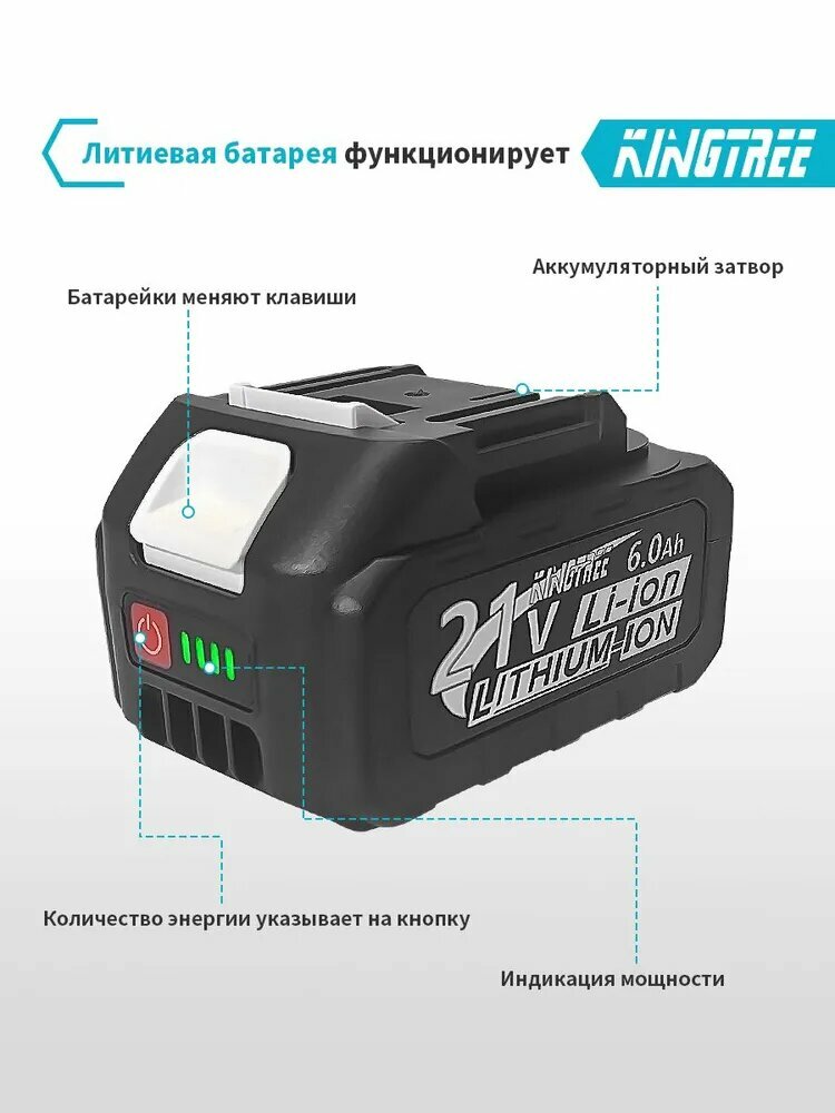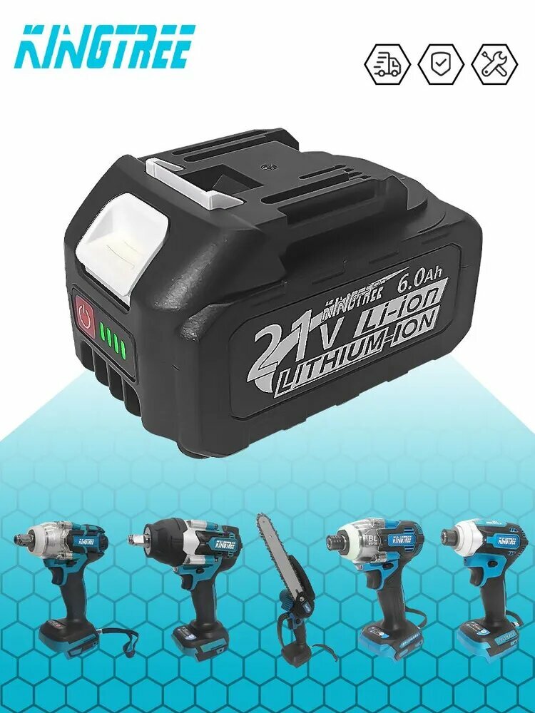 Kingtree Литиевая батарея для бытового электроинструмента, 21 В, 6,0 Ач (1 ячейка)8006 информация: