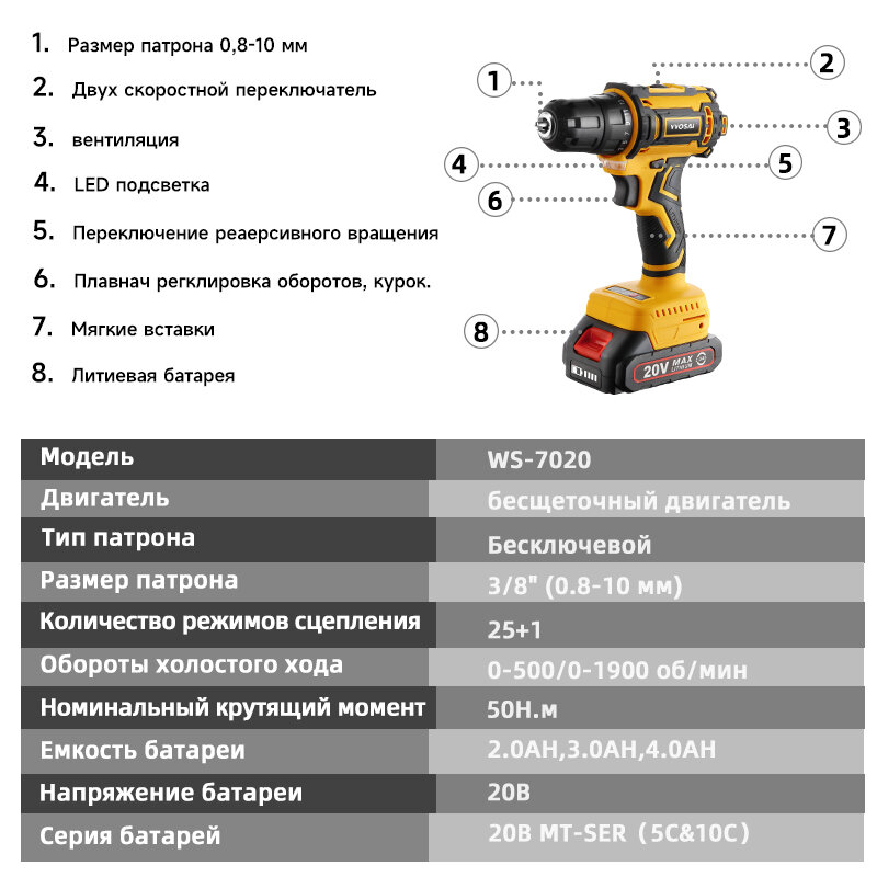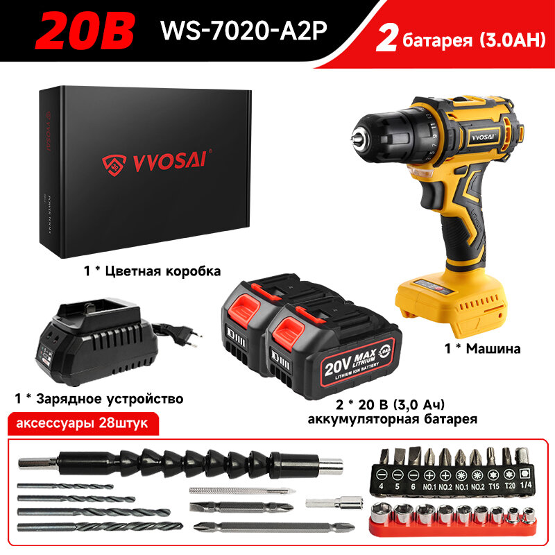 Аккумуляторная дрель, 20 В 50 Нм, 2 скорости, 2 аккумулятора, принадлежности для инструментов информация: