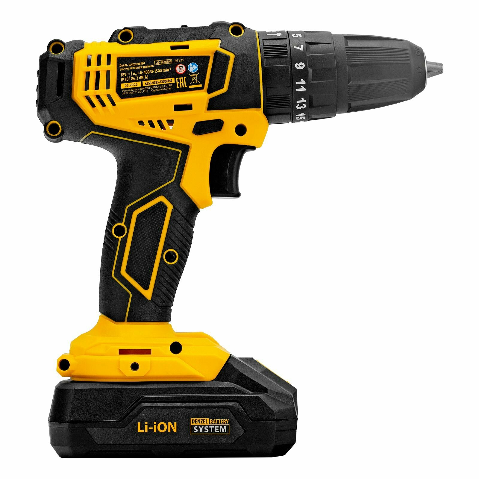 Дрель-шуруповерт аккумуляторная ударная CID-18-02BM, Li-Ion, 18 В, 2 акк. Denzel 26135 информация: