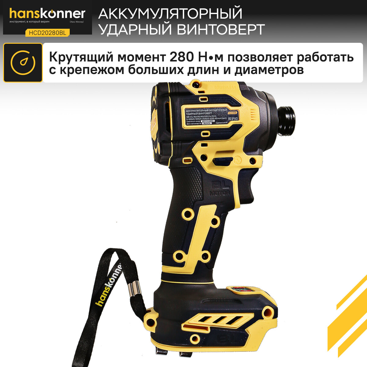 10 цен на Винтоверт аккумуляторный Hanskonner HCD20280BL 1BatterySystem ударный 280Нм, 1/4", без АКБ и ЗУ