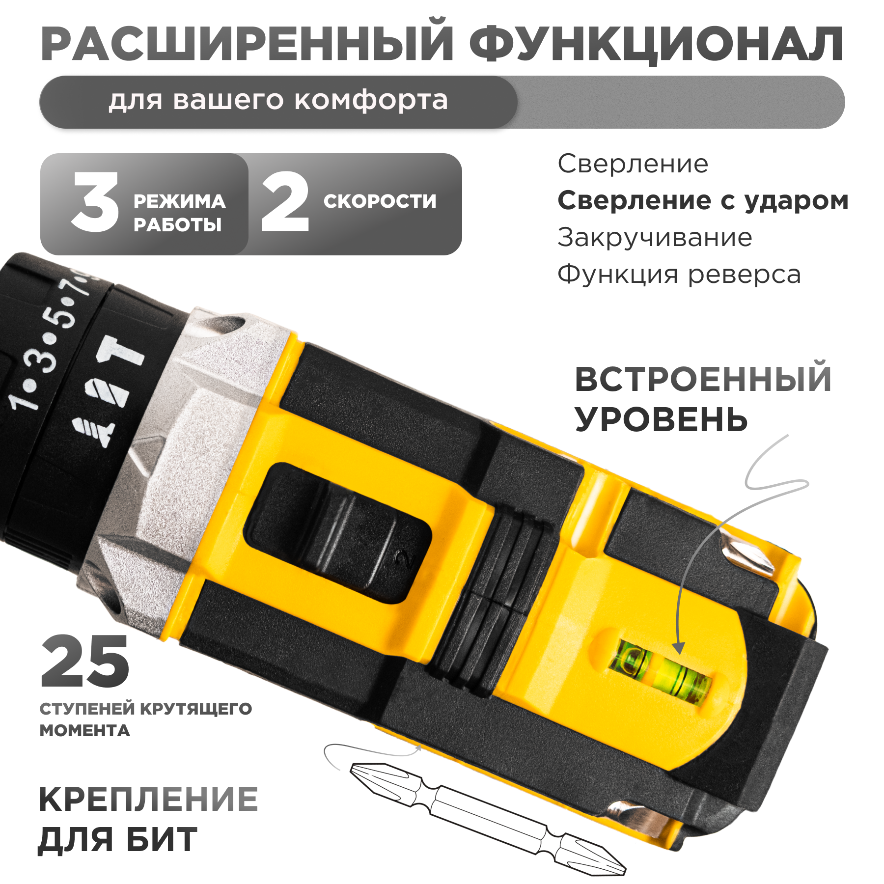 10 цен на Дрель шуруповерт аккумуляторный HK-24 Li2 ударный в кейсе 2 аккумулятора 24 В, 2 Ач, 75 Нм 3500 об/мин