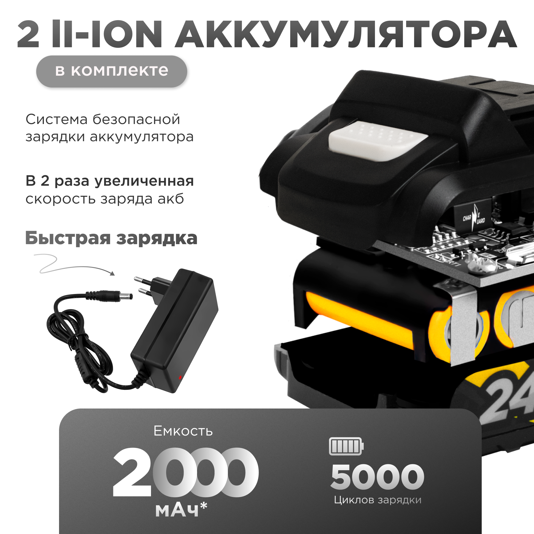 Дрель шуруповерт аккумуляторный HK-24 Li2 ударный в кейсе 2 аккумулятора 24 В, 2 Ач, 75 Нм 3500 об/мин информация: