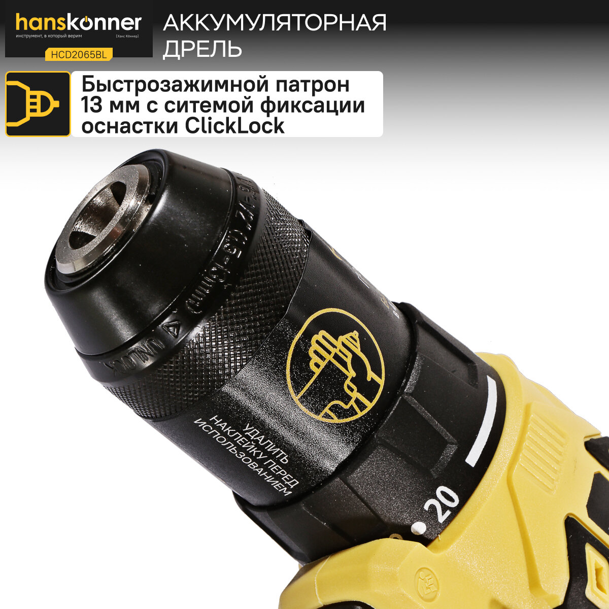 HCD2065BL Дрель аккумуляторная б/щ Hanskonner 1BatterySystem информация: