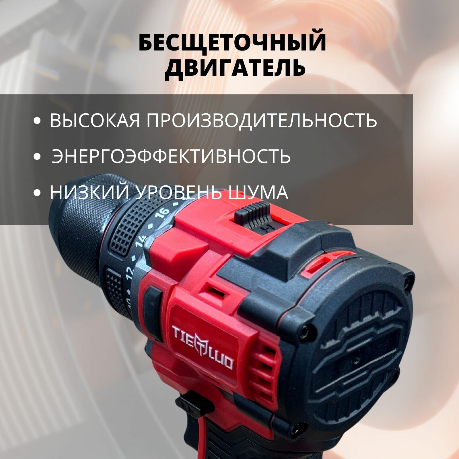TIELLIO X21T Шуруповерт бесщеточный аккумуляторный электрический дрель в кейсе, 21В, 65Нм, 2 АКБ LI-ION, 2Ач информация: