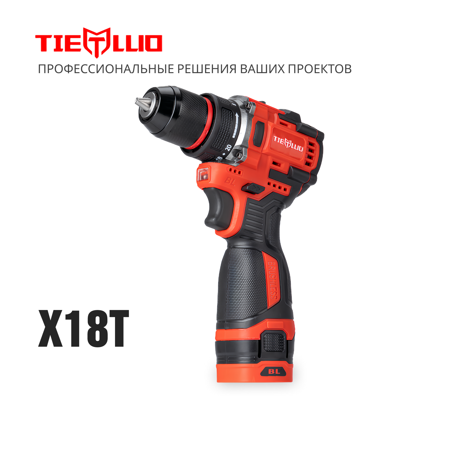 10 цен на TIELLIO X18T Шуруповерт бесщеточный аккумуляторный электрический дрель в кейсе, 18В, 65Нм, 2 АКБ LI-ION, 1,5Ач