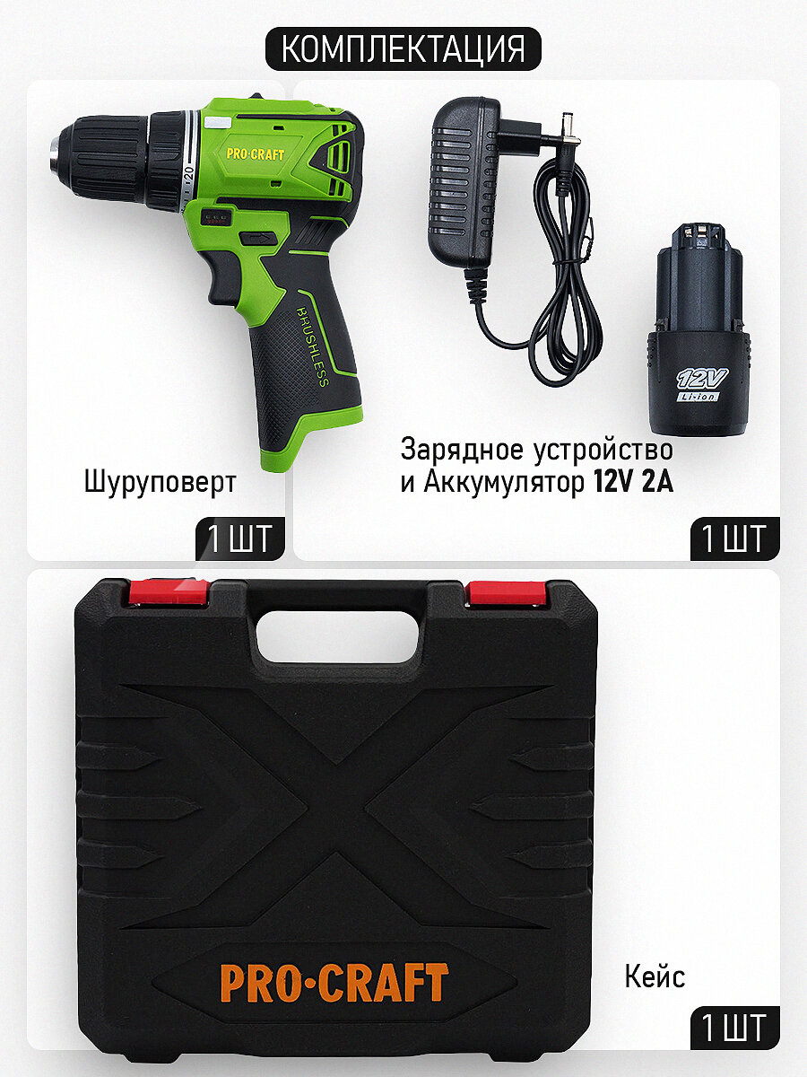 Шуруповерт аккумуляторный PA12BL PROCRAFT 12В 30Нм (АКБ 2Ач+ЗУ) информация: