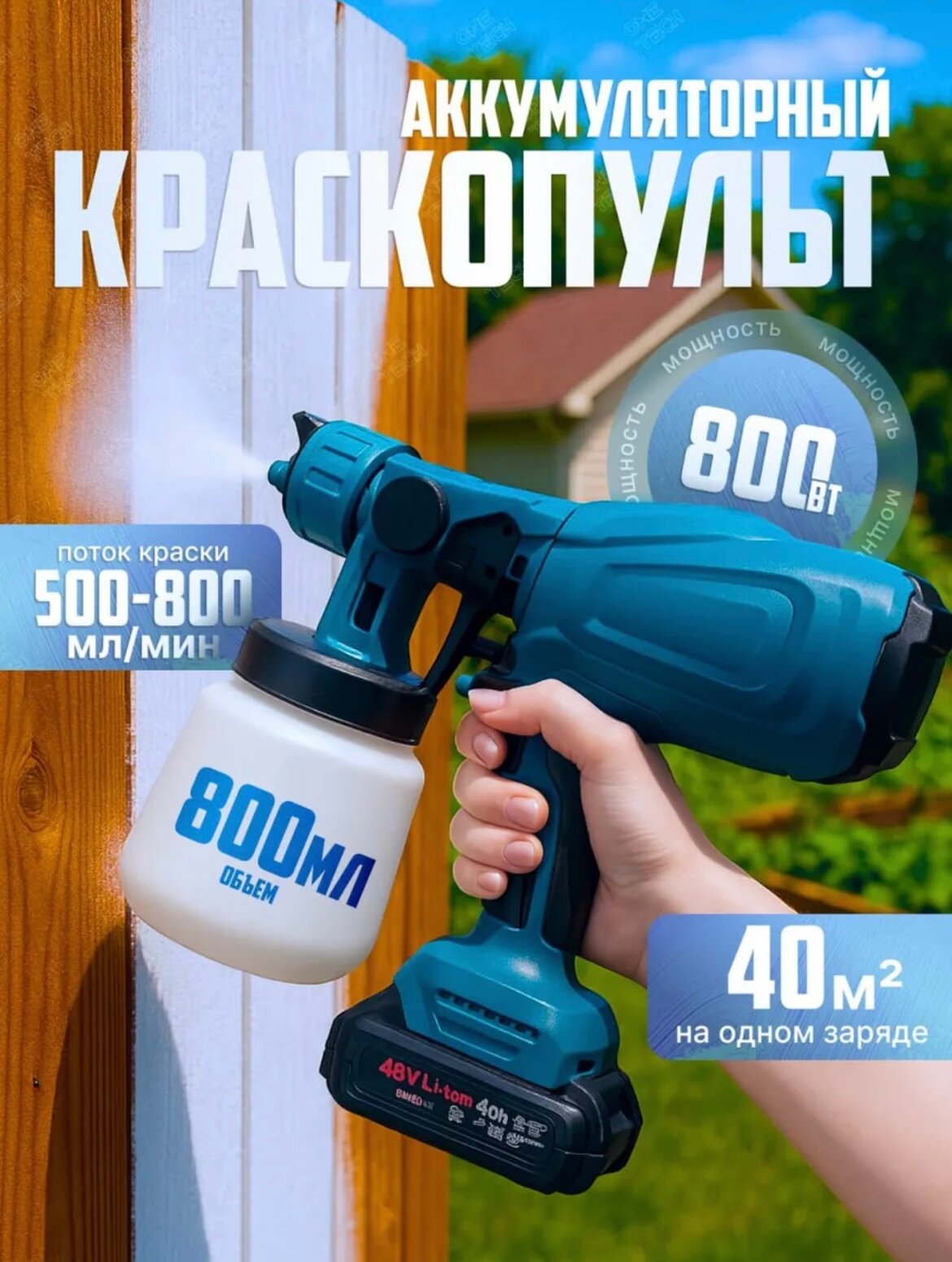 Отзывы на Краскопульт аккумуляторный для краски 800 мл, вязкость до 90, мощность 80W, синий