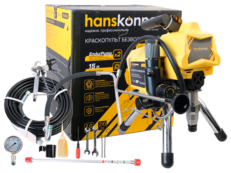 Краскопульт безвозвоздушный Hanskonner HSG9663B (1100 Вт, 2.0 л/мин, 210 бар, 15 м шланг) информация: