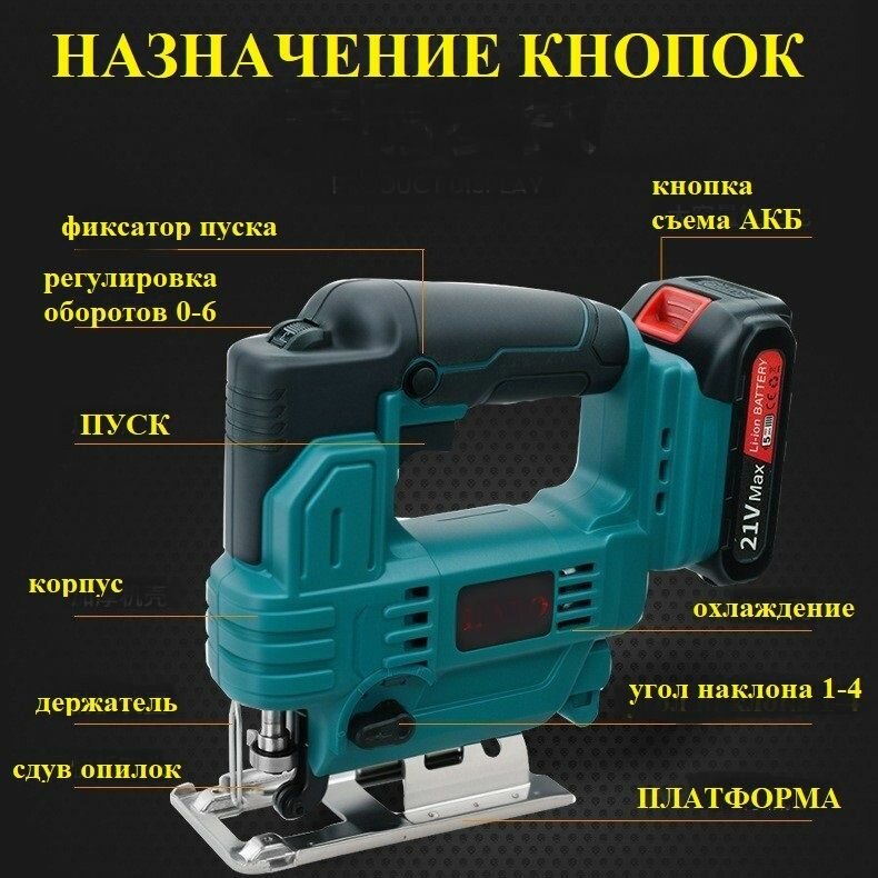 10 цен на Лобзик 6 скоростей аккумуляторный 2 АКБ 4А/ч в кейсе